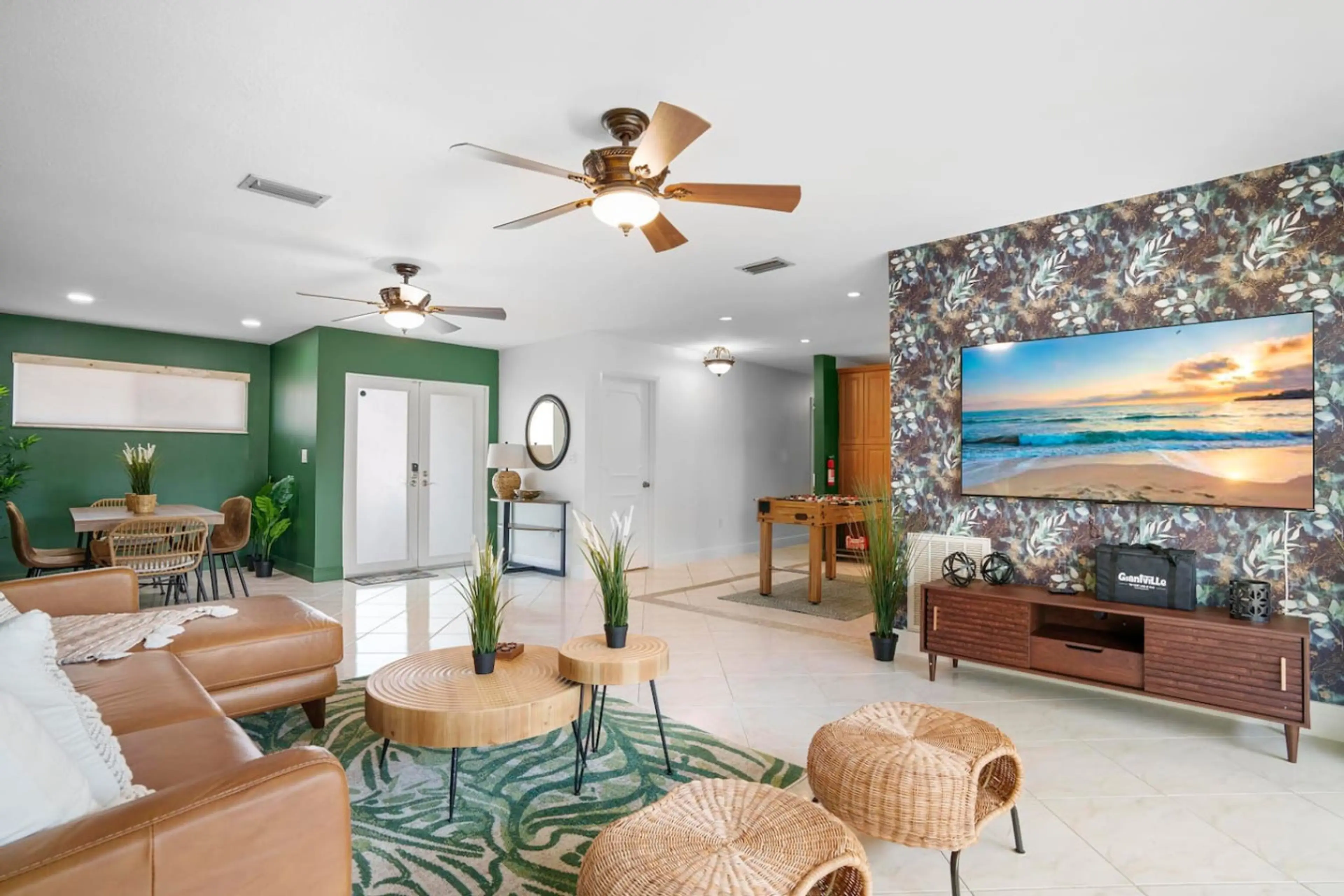🏊♂️ Private Heated pool — family favorite 🌴 Two connected villas: Santorini & Ibiza 🍳 Dual kitchens + coffee, air fryer & essentials 🛏️ 6 bedrooms · sofa beds · up to 18 guests 📺 8 Smart TVs + fast Wi-Fi 🧺 Washer/dryer + pool & bath towels 🅿️ Parking for 4 cars 🛍️ 15 min → Dolphin Mall · 🎓...