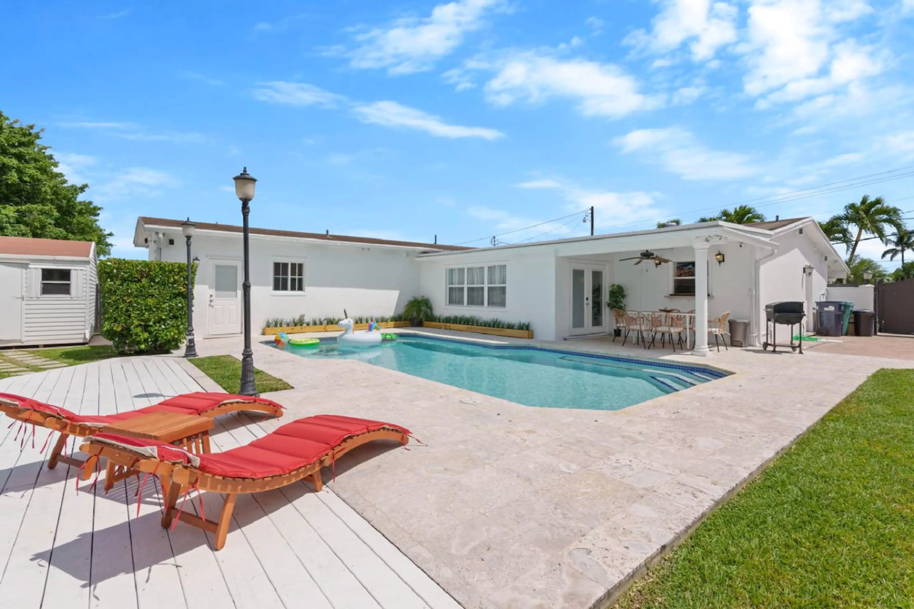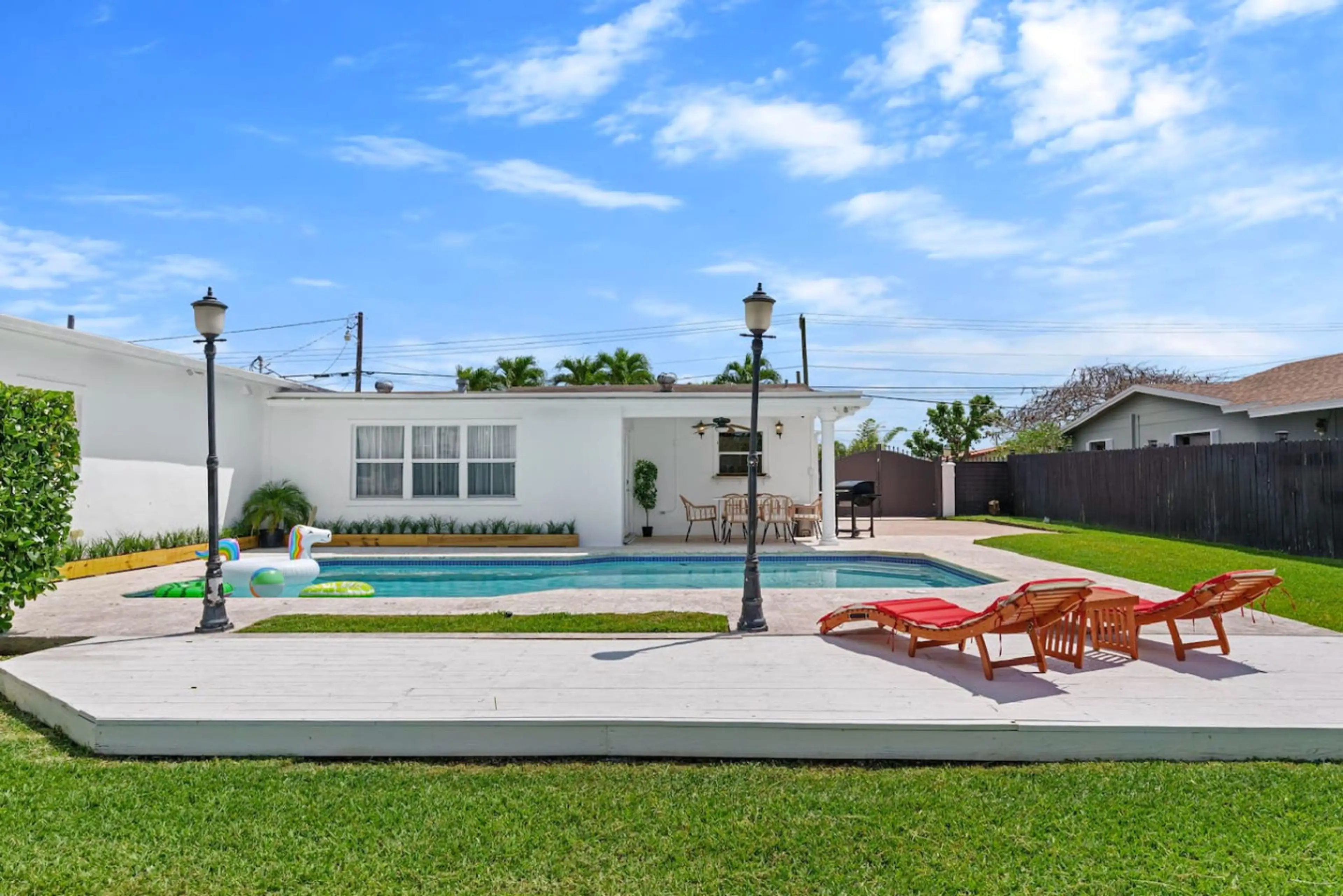 Nice house with a cozy feel. Just the right size for 6-7 people. Good sitting areas and very nice little fenced in back yard with pool, patio with awning, and pergola for additional outdoor seating. Recommended.